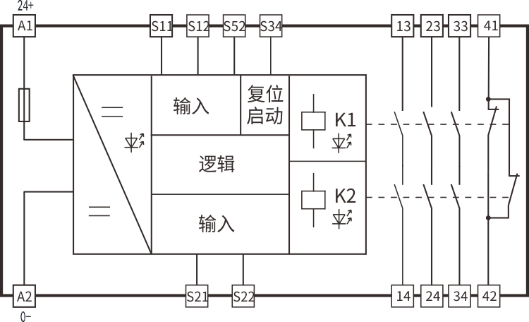 SRS-226-2N/P-3NO1NC是一款適用于具有開關(guān)量的安全產(chǎn)品輸入,具有3路常開(NO)安全輸出觸點(diǎn)和1路常閉(NC)輔助輸出觸點(diǎn)的安全繼電器。它可選擇單/雙通道操作,手動/自動復(fù)位。