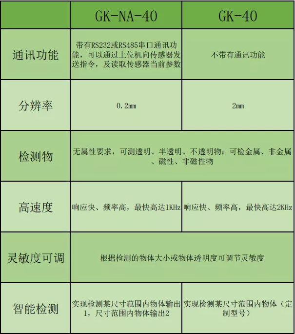 智能框型計(jì)數(shù)傳感器具有很高的靈敏度,分辨率可達(dá)0.2mm。GK-NA框型計(jì)數(shù)傳感器常用于檢測(cè)小零件、金屬或非金屬部件的計(jì)數(shù)、沖壓廠種監(jiān)控工件的彈出或移除。