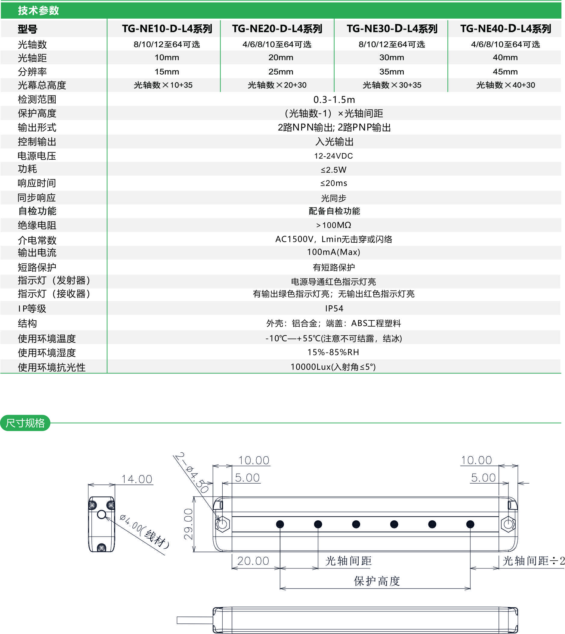 四級安全光幕超薄型TG-NE-D-L4正面對射