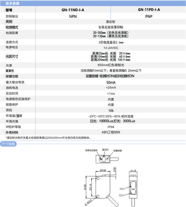 條形光背景抑制光電開關(guān)GN-11D-I-A系列