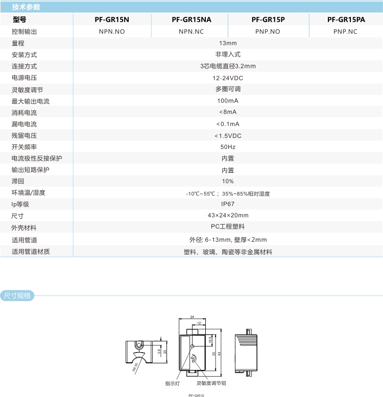 電容式液位傳感器是根據(jù)靜電容原理設(shè)計(jì),所以它可以檢測(cè)非透明管道里面的液面情況,如橡膠管、鐵氟龍管、PVC管、陶瓷管等。