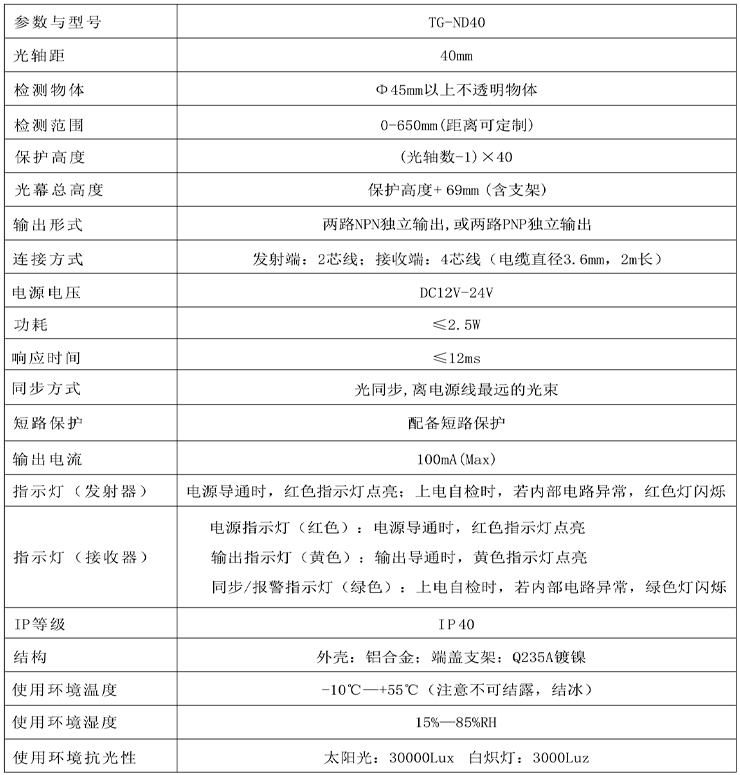首頁 > 產(chǎn)品中心 >>傳 感 器 >> 安全光幕 >> 四級(jí)安全光幕超薄型TG-ND-40系列