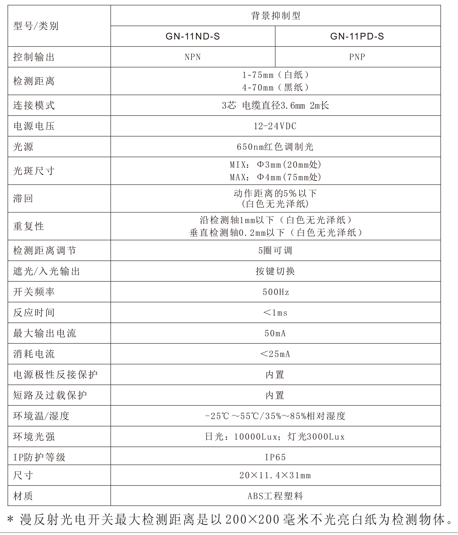 首頁 > 產(chǎn)品中心 >>傳 感 器 >> 光電開關(guān) >> 背景抑制光電開關(guān)GN-11D-S