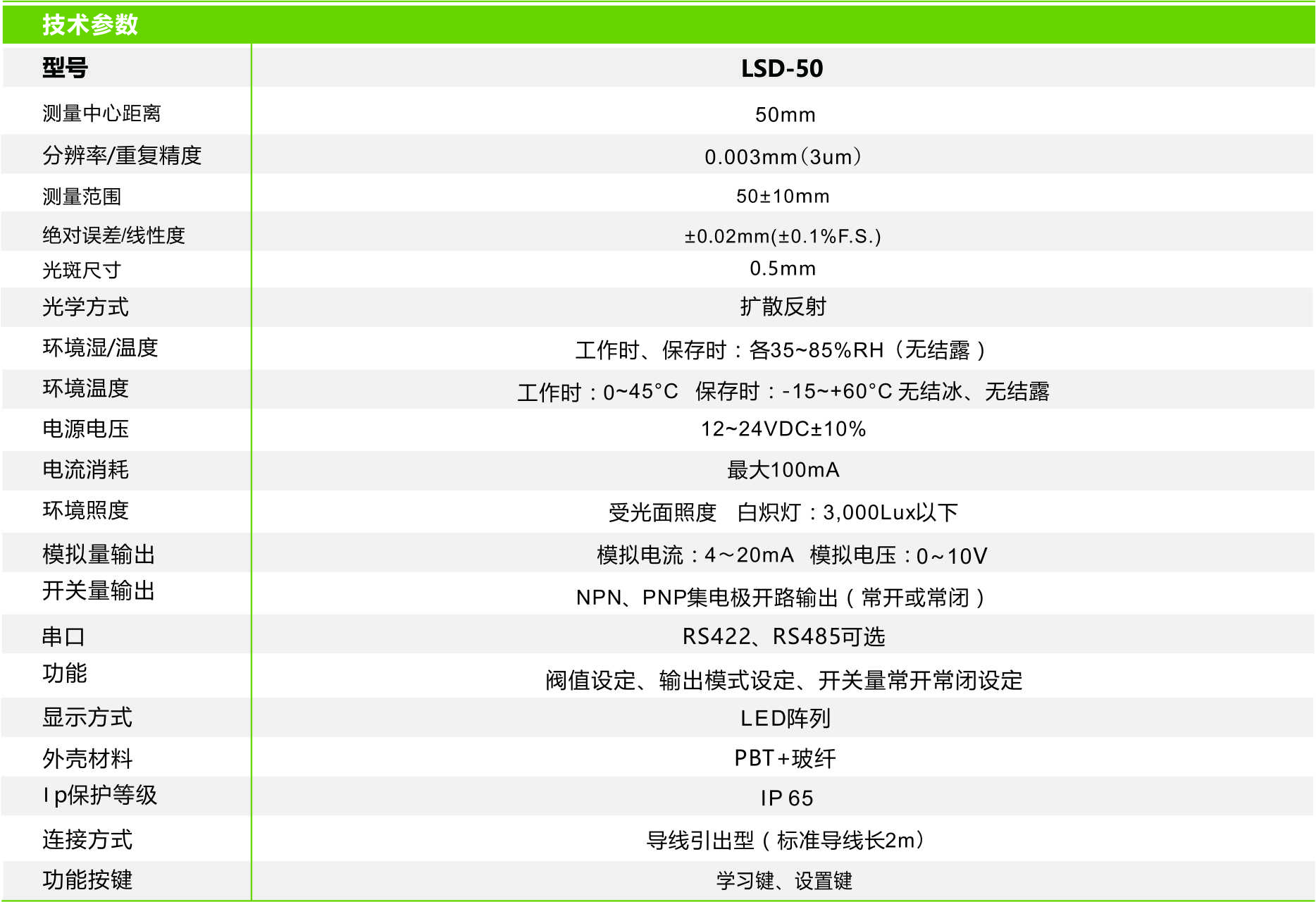 首頁(yè) > 產(chǎn)品中心 >>傳 感 器 >> 激光位移傳感器 >> 激光位移傳感器 LSD-50