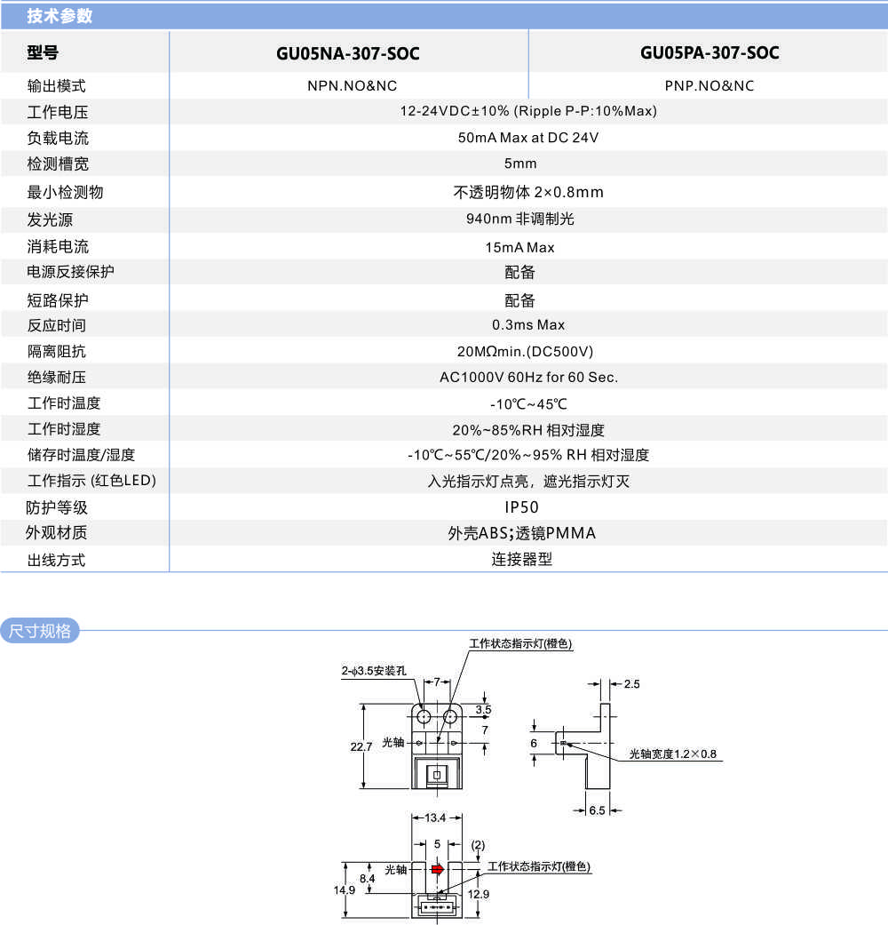 槽型光電開(kāi)關(guān)GU05-307-SOC