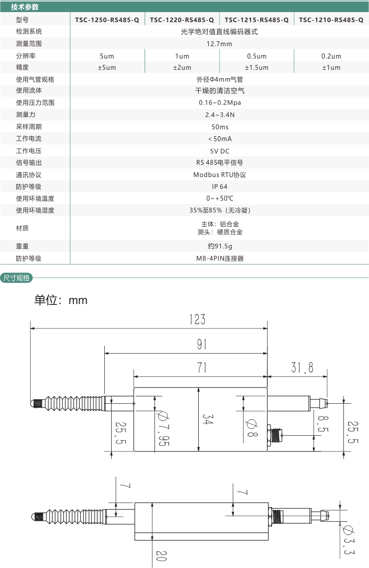 標(biāo)準(zhǔn)型接觸位移 氣動款TSC-12-Q系列